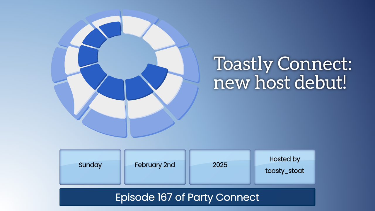 An episode of Party Connect hosted by toasty_stoat. Serving up some s̶t̶i̶m̶u̶l̶a̶t̶i̶n̶g̶ i̶n̶c̶r̶e̶d̶i̶b̶l̶e̶ adequate connections in my first Party Connect.