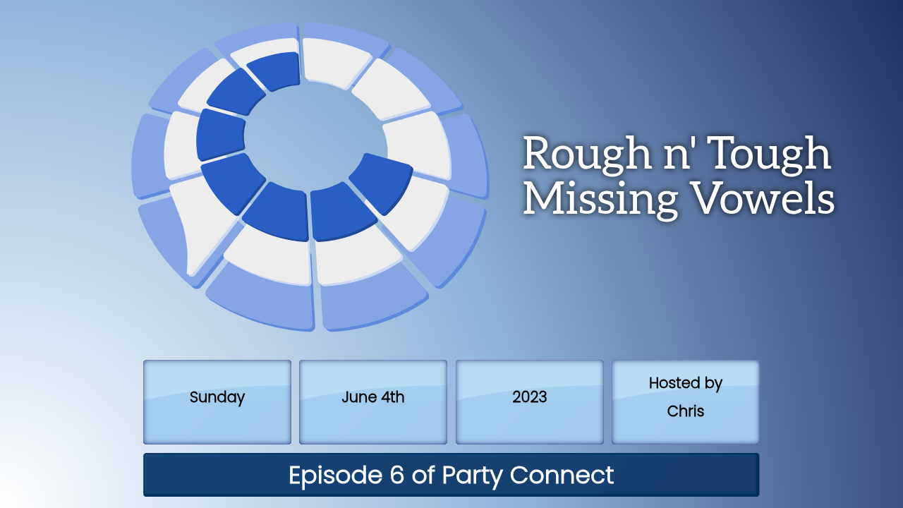 An episode of Party Connect hosted by Chris. Missing vowels start to become more challenging!